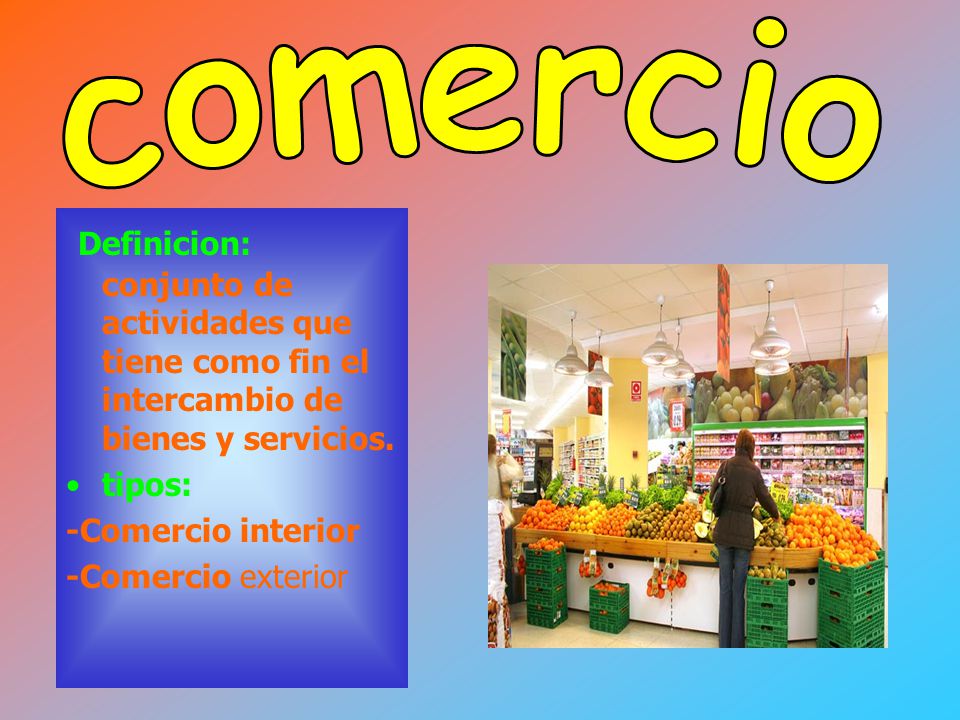 El comercio es el conjunto de actividades que tienen como objetivo el intercambio de bienes y servicios. El comercio exterior representa el intercambio entre un país y otro, con el fin de que las naciones involucradas puedan cubrir sus necesidades de mercado tanto externas como internas. La entrada al territorio nacional y la salida del mismo de mercancías y de los medios en que se transportan o conducen, el despacho aduanero y los hechos o actos. Este tipo de comercio permite una mayor competencia y precios más competitivos en el mercado. Comercio exterior se refiere al conjunto de transacciones comerciales que se dedica a exportar los productos que se fabrican en un lugar a otros países ya importar los productos que se fabrican. ¿Qué es Comercio Internacional? » Su Definición y.